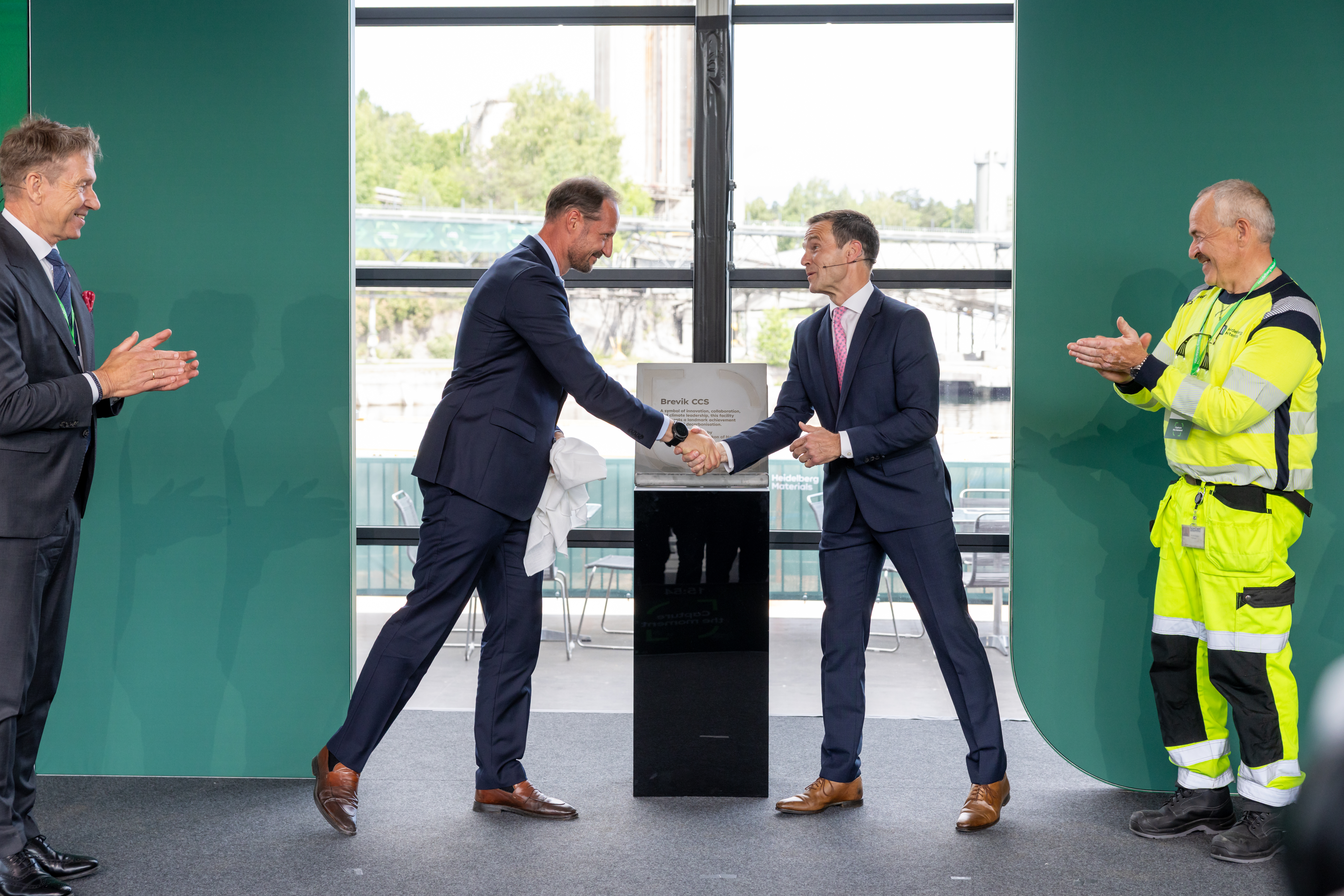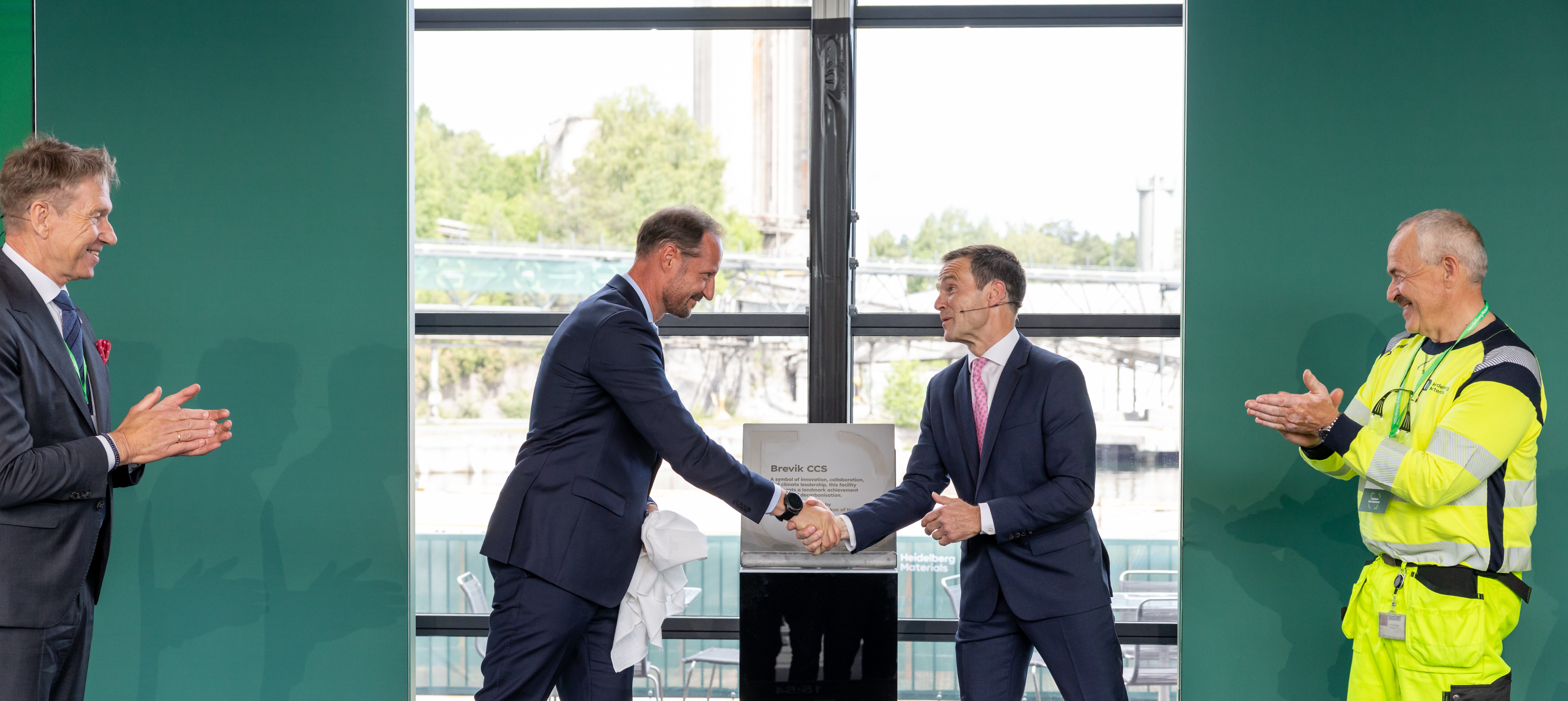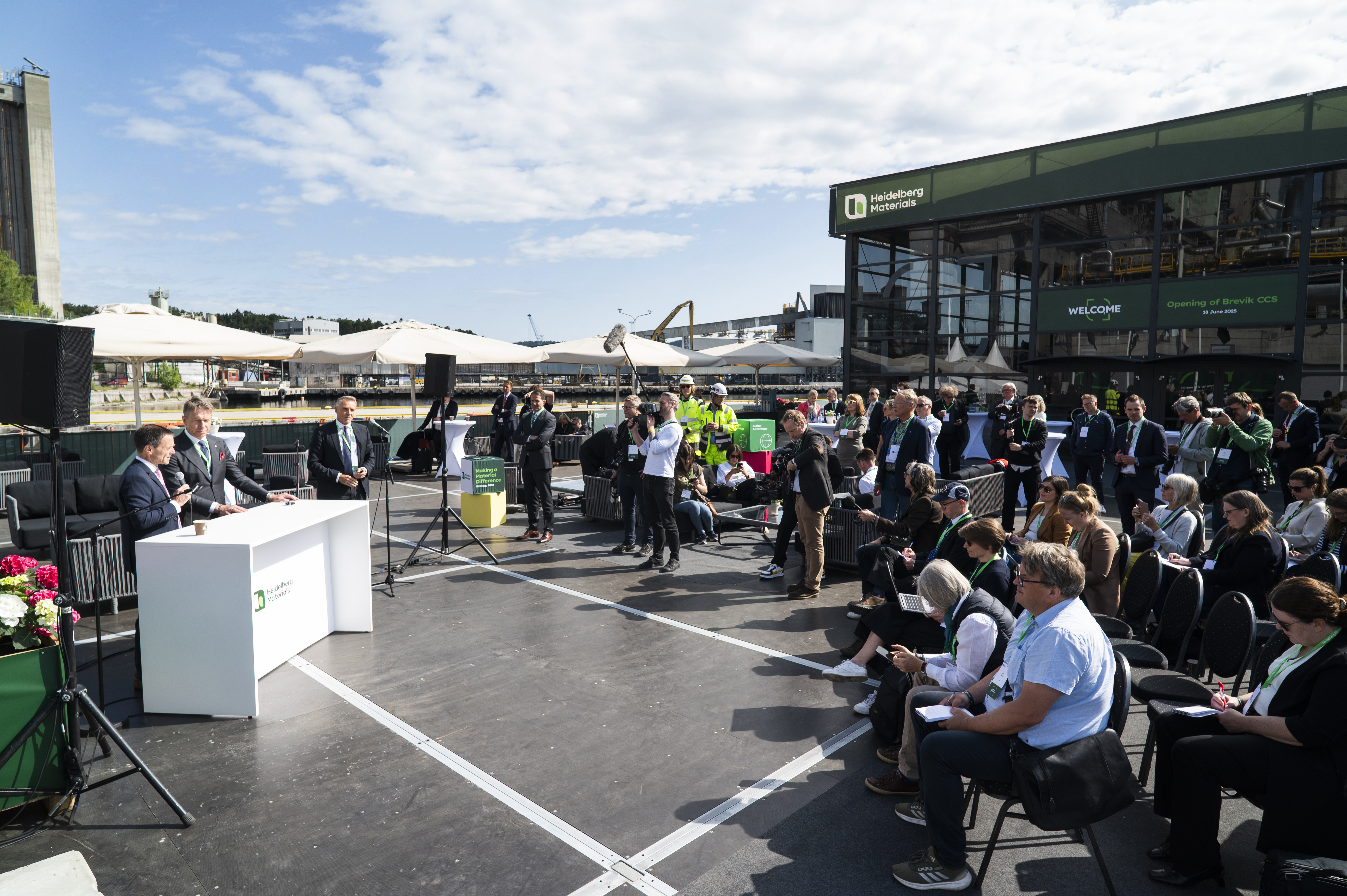 Svinīgās ceremonijas laikā Brevik cementa rūpnīcā Viņa Karaliskā Augstība Norvēģijas kroņprincis Hokons oficiāli atklāja īpaši izgatavotu betona piemiņas plāksni, iezīmējot šo vēsturisko notikumu. Pasākumā piedalījās arī Norvēģijas enerģētikas ministrs Terje Aslands, Heidelberg Materials valdes priekšsēdētājs Dr. Dominiks fon Ahtens, kā arī vairāk nekā 320 viesu – nozares līderi, augsta līmeņa valdības amatpersonas no dažādām valstīm, NVO un jaunuzņēmumu pārstāvji.