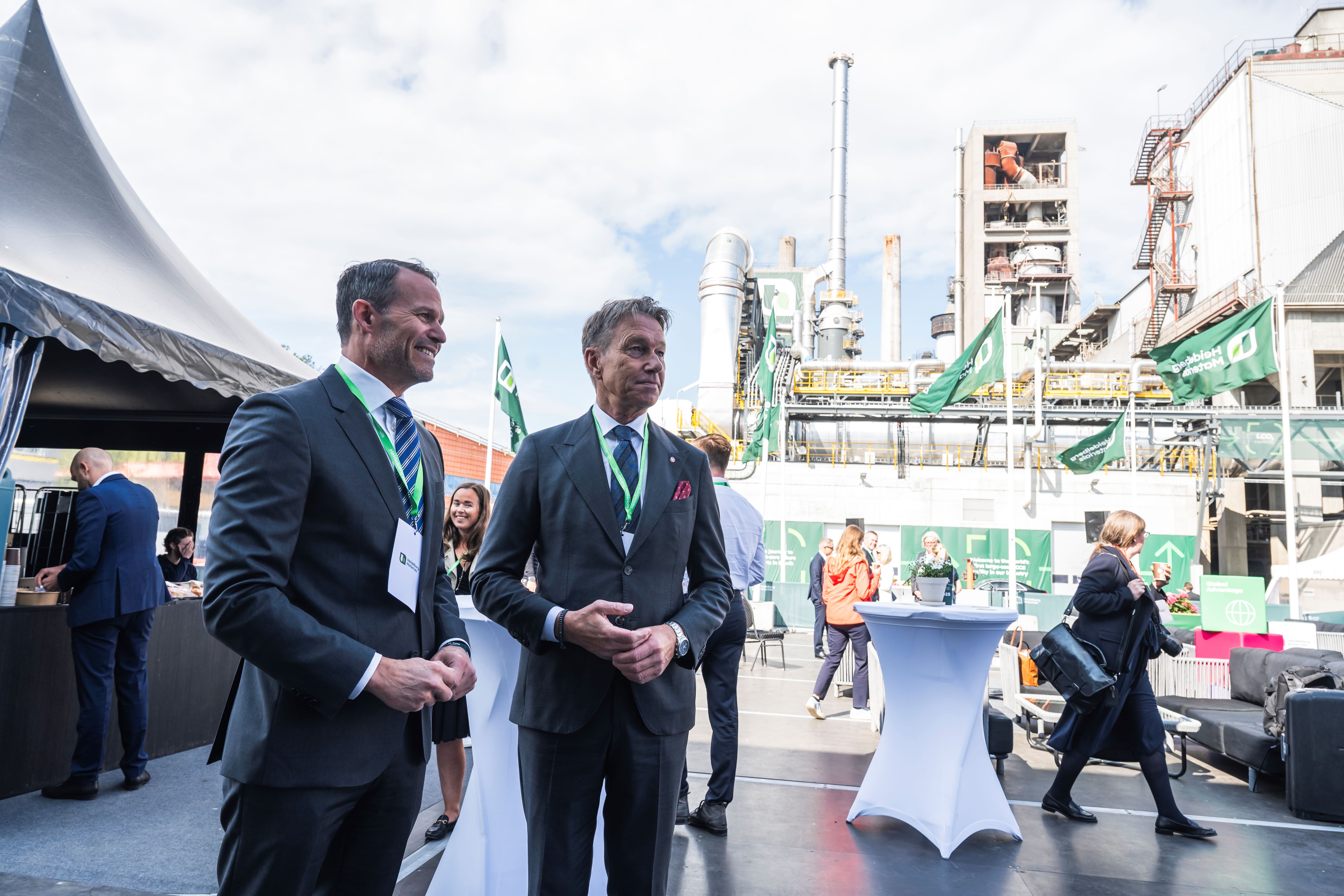 Norvēģijas enerģētikas ministrs Terje Āslands (pa labi) kopā ar Givu Brantenbergu, Heidelberg Materials Northern Europe izpilddirektoru.