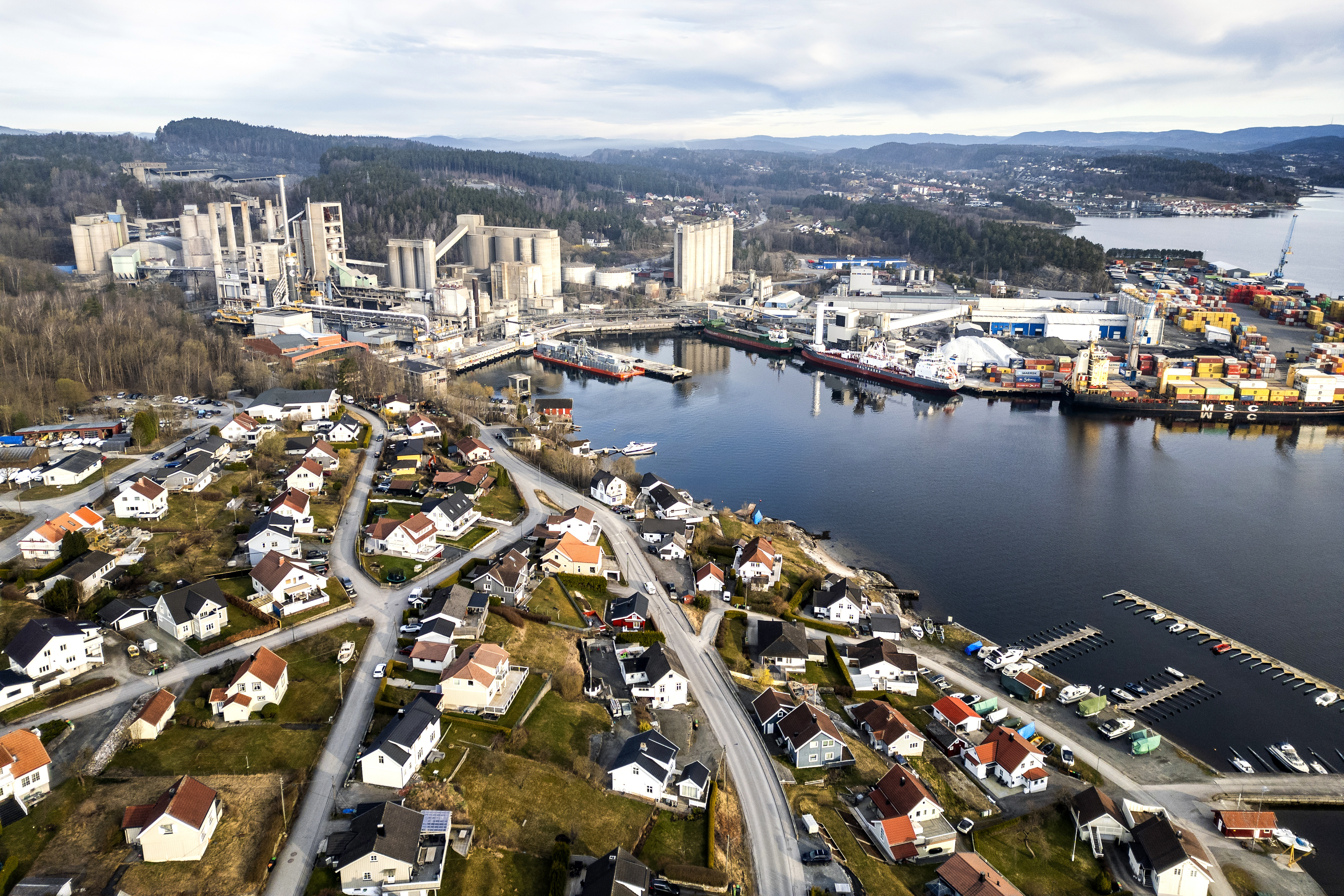 Heidelberg Materials cementa rūpnīca Eidangeras fjordos.